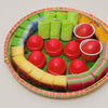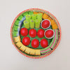 A selection of 36 bite-size pieces kueh  and 2 red eggs beautifully arranged on a handwoven bamboo platter. Platter will be covered in clear plastic wrap for delivery.
