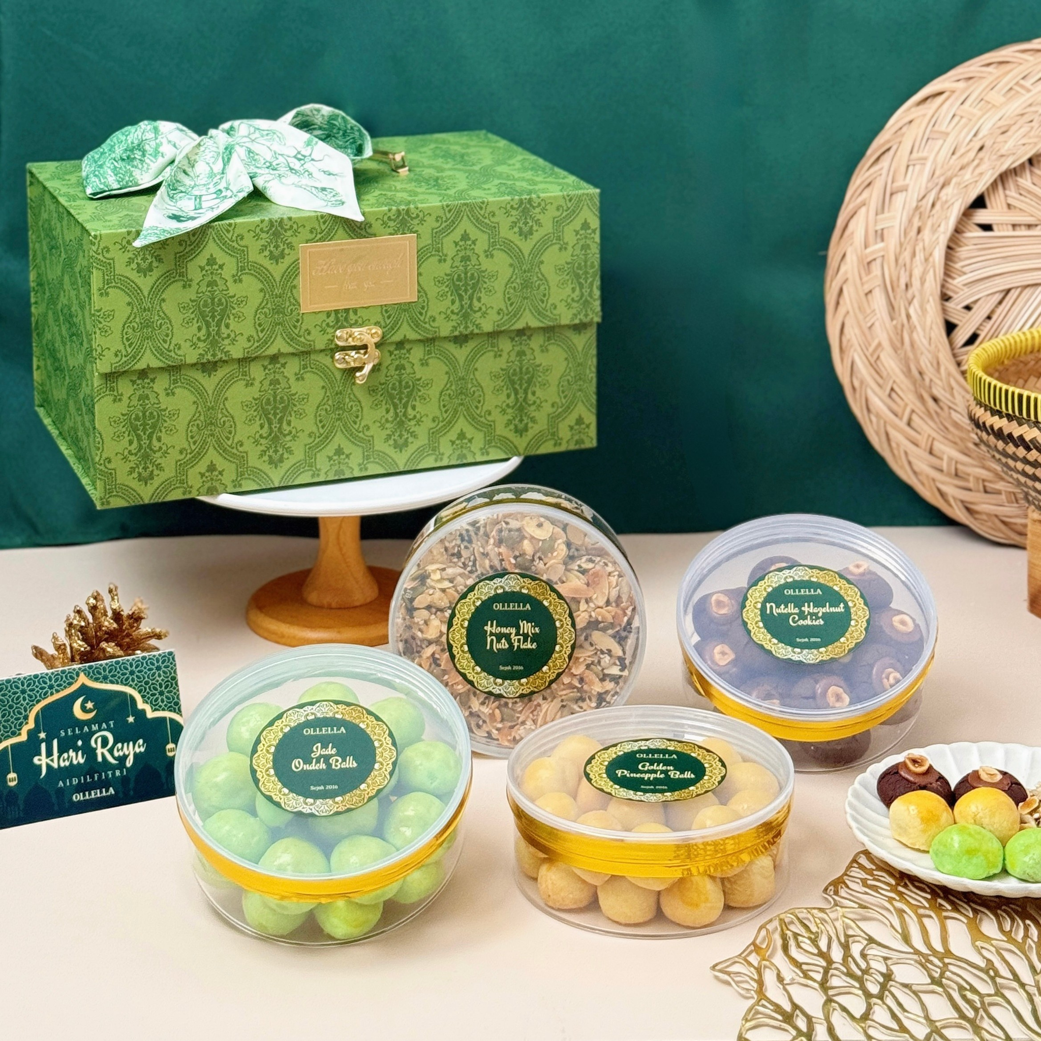Beautifully presented in an elegant emerald keepsake box, this premium Hari Raya gift set is perfect for corporate gifting, open house hosting, and impressing loved ones with a refined taste of tradition and indulgence.