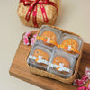 Contains 4 pcs of smooth lotus paste with roasted melon seeds, a timeless taste loved by traditionalists and 4 pcs of Pandan lotus paste with signature gula Jawa coconut mooncakes.